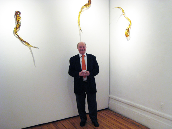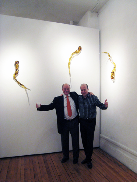 Charles Hecht's Glass Installation "3 Crocodile Fish" as part of a three person group show May 1 - May 15, 2009 at Broadway Gallery 473 Broadway, 7th Floor, New York, New York.